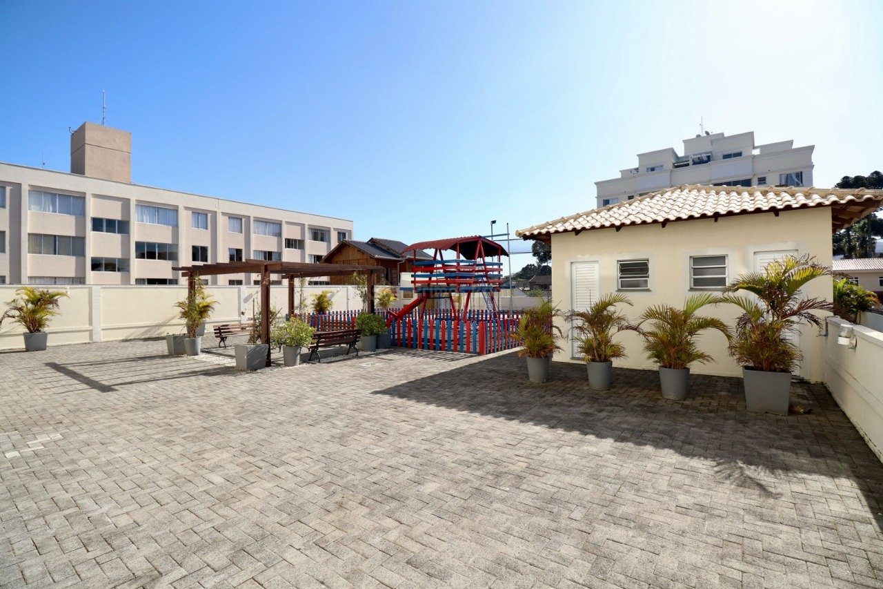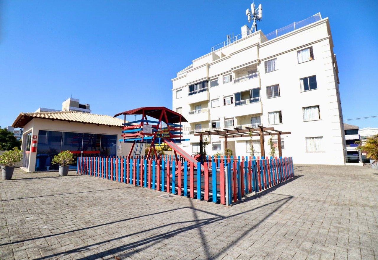 Área de lazer com quadra poliesportiva e parquinho